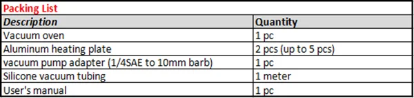 | Vacuum Port: | 10mm hose barb (Optional KF25); | Chamber Material: | Mirror Surface, Stainless Steel 304; |