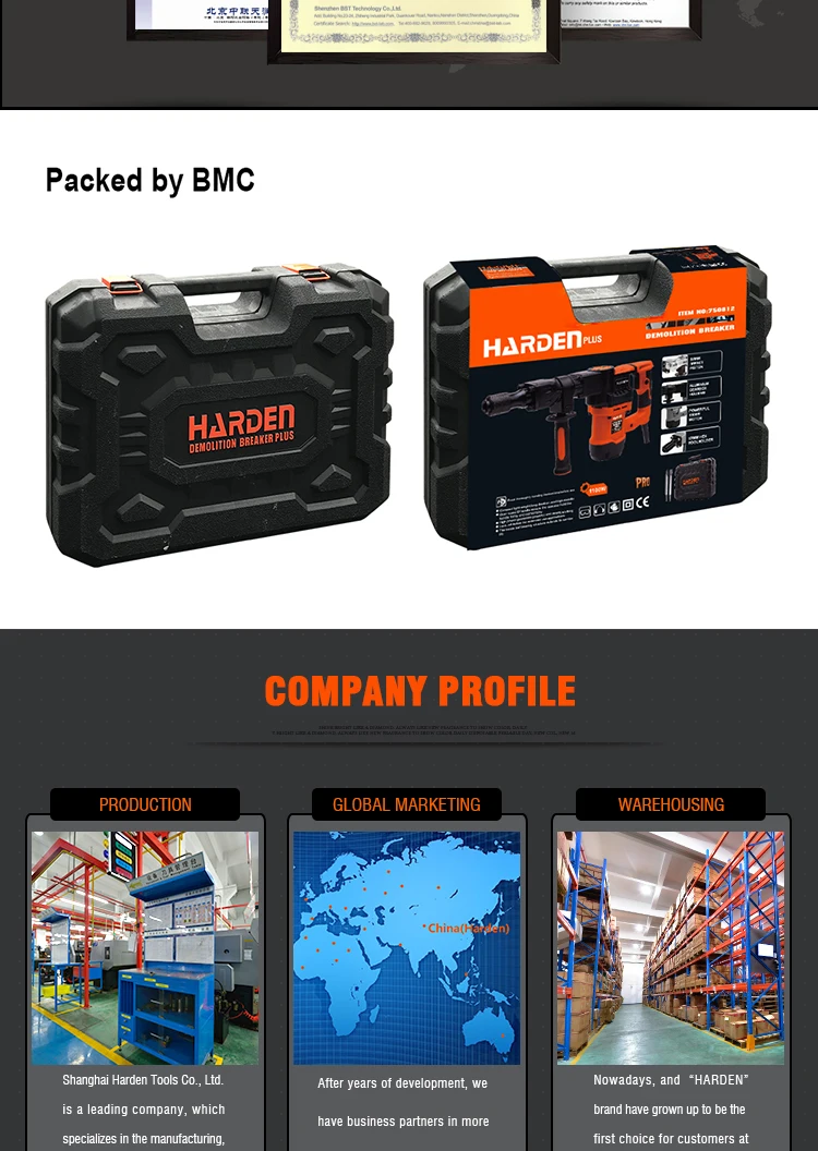 | Frequency: | 50/60Hz; | Packaging Detail: | Demolition Breaker packing by color box; |