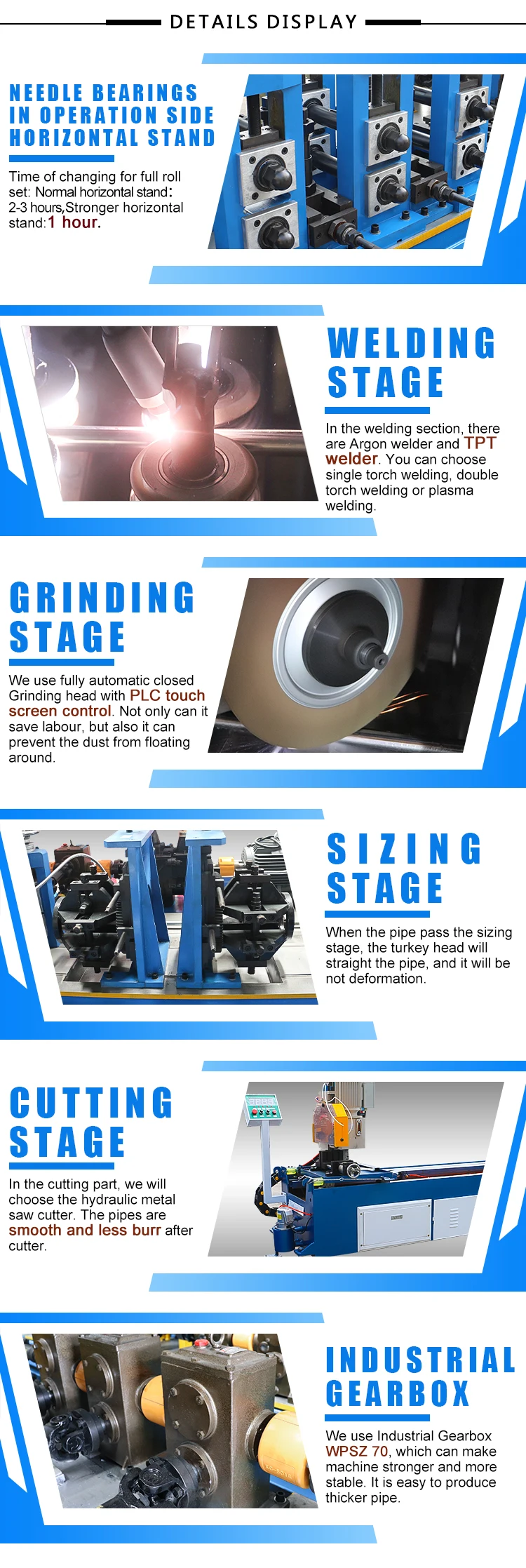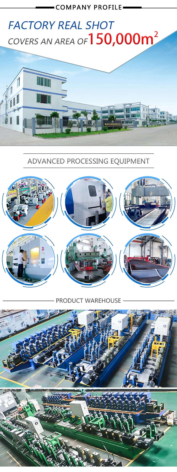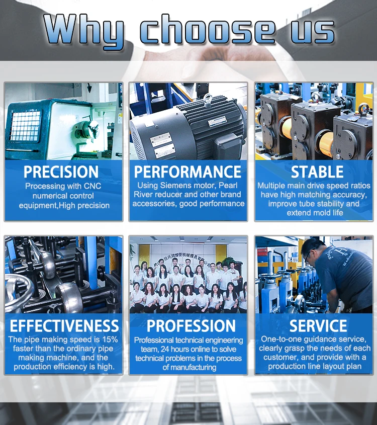 Foshan YXH Tube Mill & Mould Co.,Ltd offer different stainless steel tube mill manufacturing machine, covering range from 6mm to 325mm. (0.24''to12.7''pipe diameter), and thickness is 0.2mm to 6.0mm round pipe, square pipe, rectangle pipe, oval pipe and other irregular pipe as well.