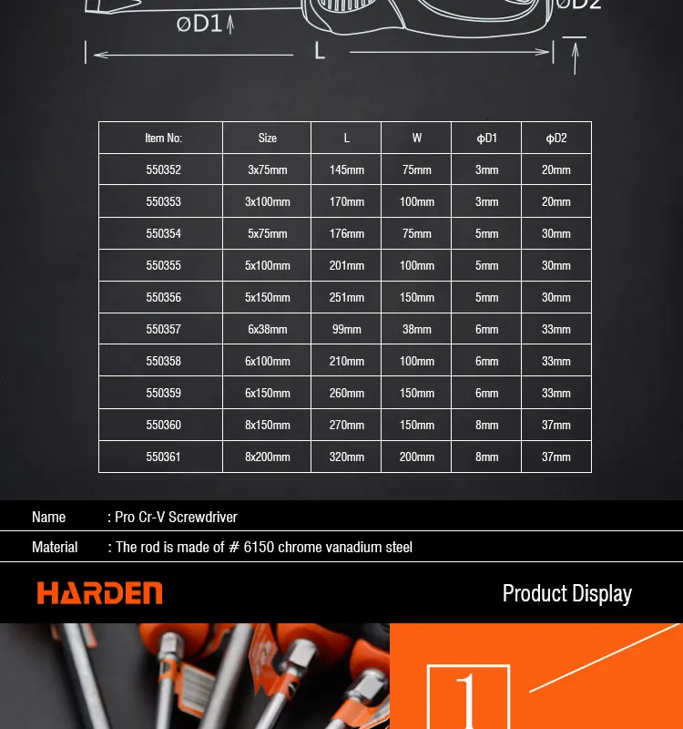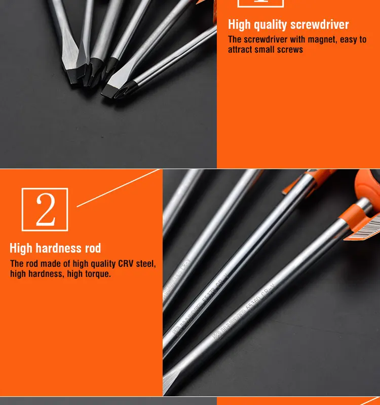 | Model Number: | 550352; | Packaging Detail: | Professional 8x150mm Hand Tool CRV Flat Type Screwdriver Set PACKING: carton box; |