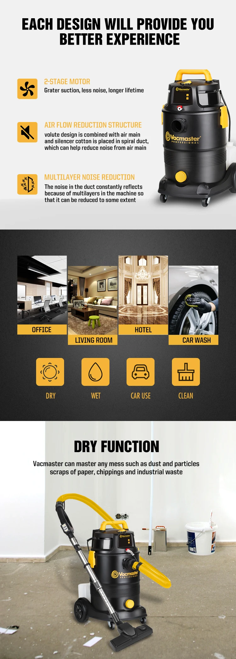 A1: We are the biggest wet & dry vacuum cleaner factory in China over 15 years. Our brand Vacmaster has been awarded as the most innovative brand in North America. Pls review our website for more product information http://www.cleva-na.com or www.cleva-uk.com