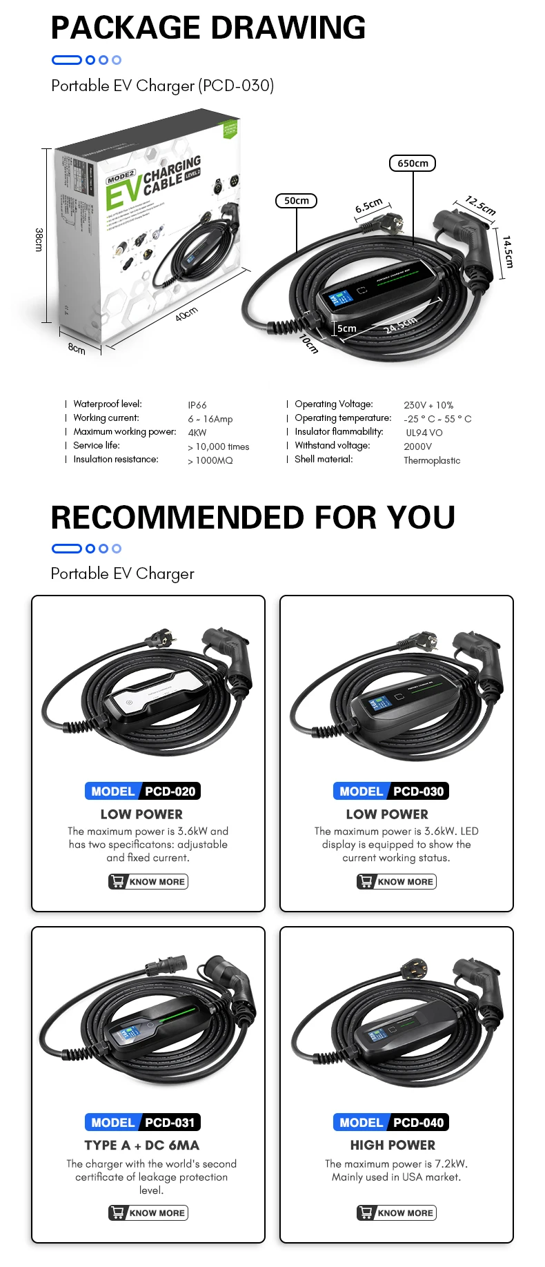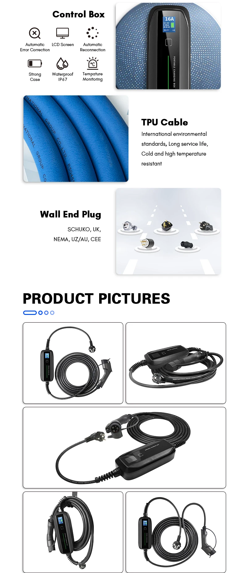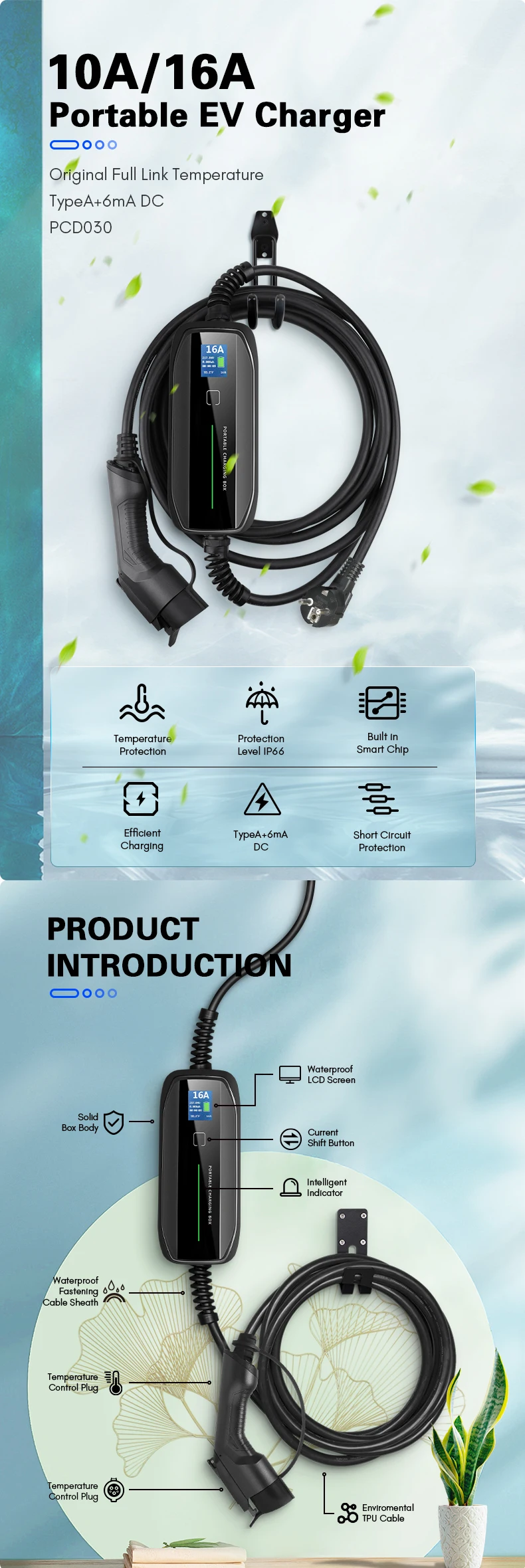 10A 16A LCD Screen IEC 62196 Type 2 Portable Charging Box with CEE Plug