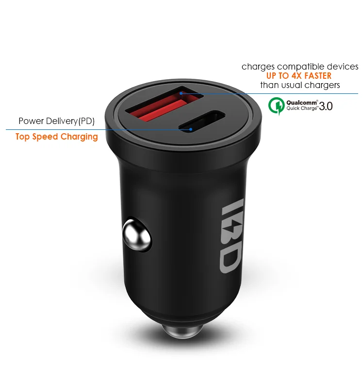 | Packaging Detail: | pack in kraft gift box 2018 Newest Super Fast 2 In 1 PD Plus Quick Charge 3.0 QC 3.0 Mini Usb Dual Port 2 Usb Car Mobile Charger With Led; | Input voltage and current: | 12-24V/5A; |