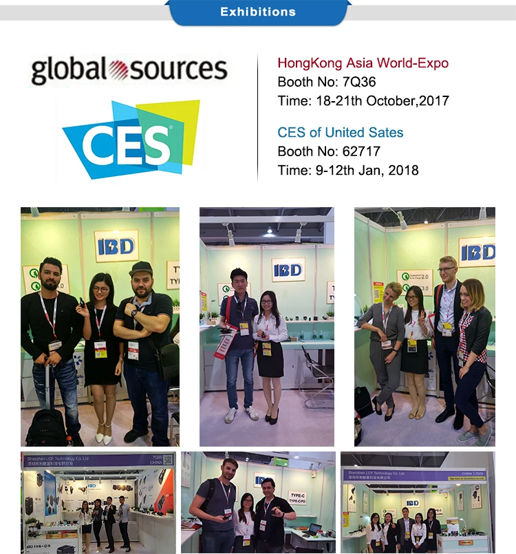 Our main products include QC 2.0/3.0 USB car charger, USB travel wall charger, mobile power bank, USB desktop charger, Type-c PD USB charger, USB data cables and so on.We have exported our products to United States, Japan, Australia, United Kindom and other 20 countries and built long term partnership with our clients.