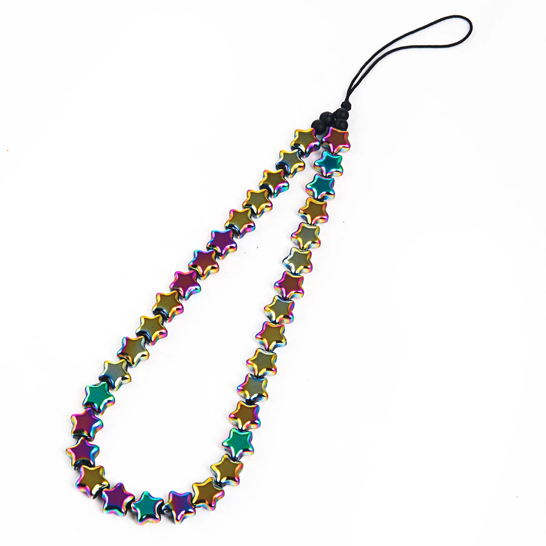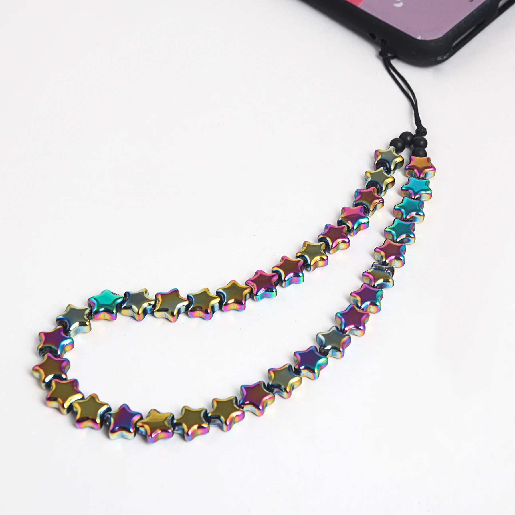 Fashion Obsidian Beaded Mobile Phone Charm Cool Laser Color Lanyard Firm Bag Dongle Phone Chain Accessories For Women |