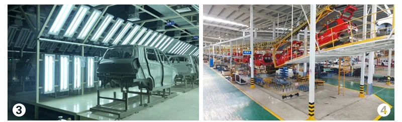 1. Jinpeng has 22 sets of blanking molding plate cutting machine and 560 sets of inclinable power press as well as 5 units of CNC machining center.2. There're 200 sets more OTC welding robots and 16 welding lines, with the capacity of 260 thousands annual output of electric cars.