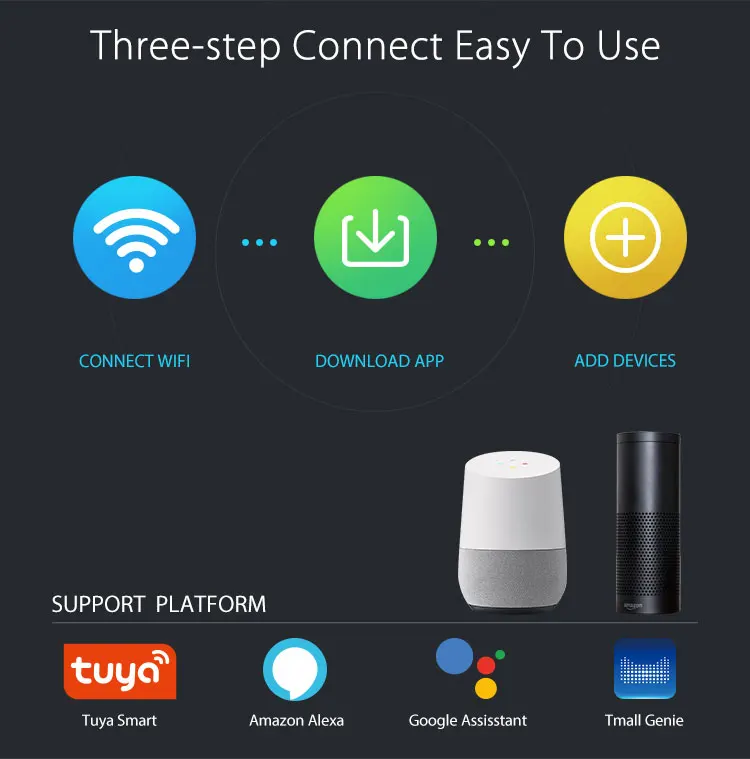 | App: | Tuya Smart Life; | Wireless Rnage: | 45m; |