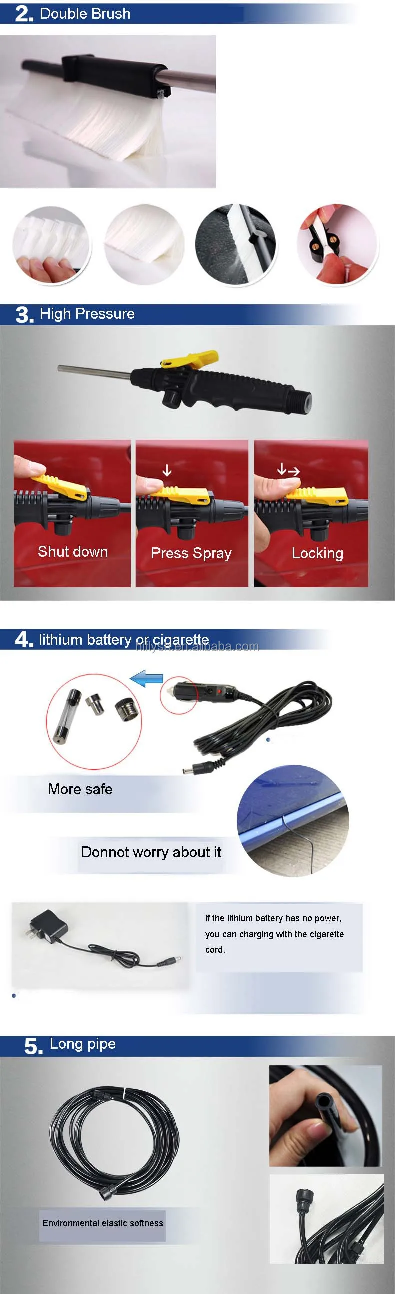 This kind of car washer has two power supply. One is no wire with Lithium battery. One is with cigarette lighter.