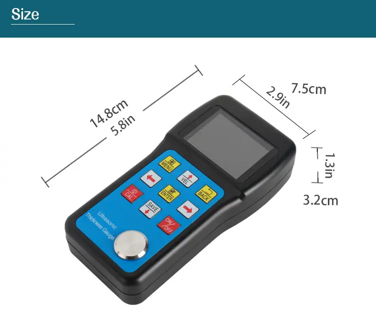 | Product Name: | ultrasonic thickness gauge; | Storage: | 40 values of saved data; |