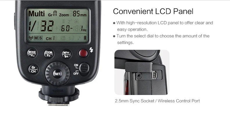 | Flash Duration: | 1/300s-1/10000s; | Weight: | 400g(battery not include); |
