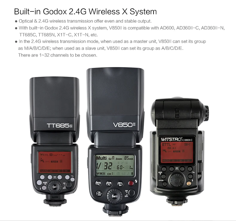 Godox V850II 2.4G GN60 Li-ionBattery Camera Flash Speedlite for Canon Nikon Sony |