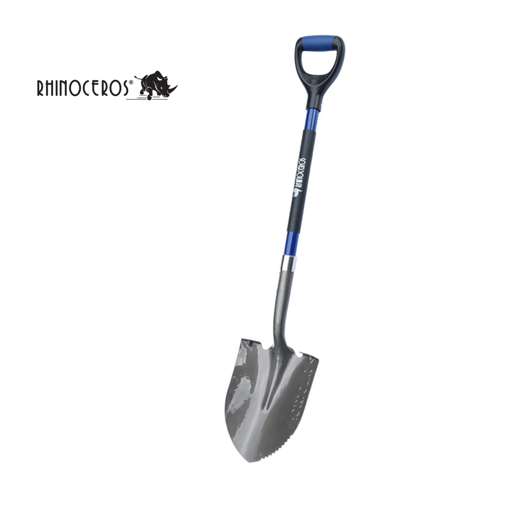 Product Name:Rhino Fiberglass D Handle Round Point Shovel Model:RH-FDHRP01 Feature: 1) Powder coated carbon steel head which is resistant to rust 2) Great ergonomic fiberglass handle with Y shape soft grip for comfortable work 3) heavy duty construction for digging,removing, loosening and transplanting soil 4) non slip & safe foot rest/foot step |