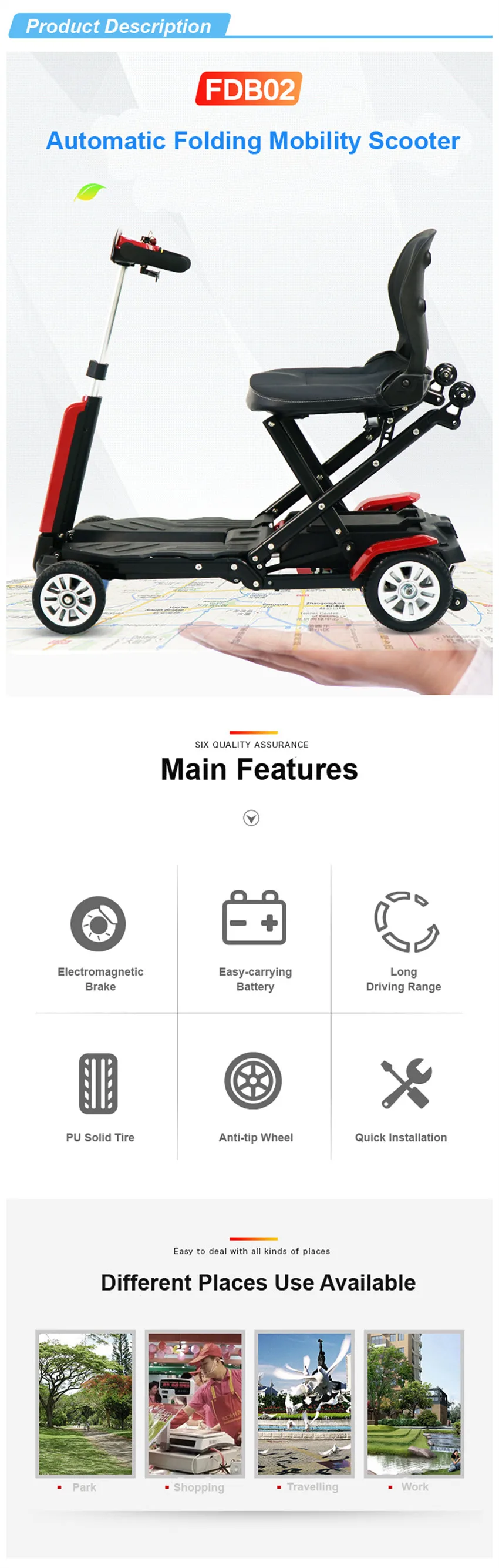 3.Suitable for the elderly and the disabled outdoor and travel use.