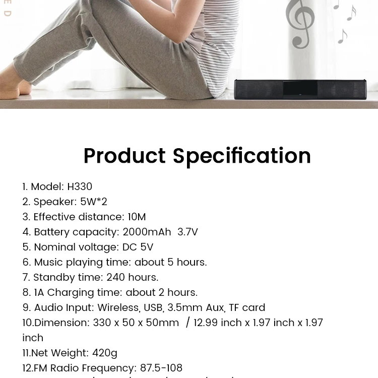| Model Number: | H330; | Packaging Detail: | Somostel H330 portable outdoor wireless mini soundbar speaker for TV home theater sound bar BT5.0 speaker perfect sound; |