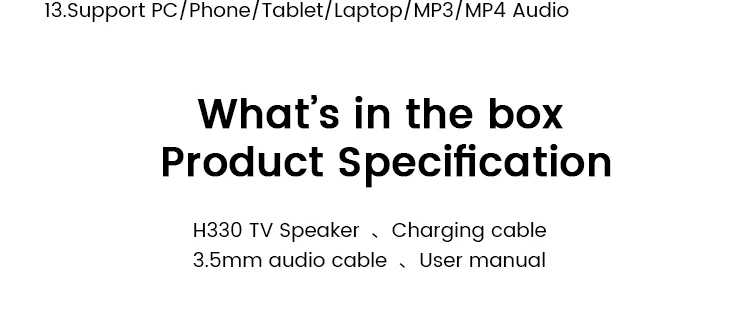 Speaker dimension:330mm(W)*50mm(D)*50mm(H)