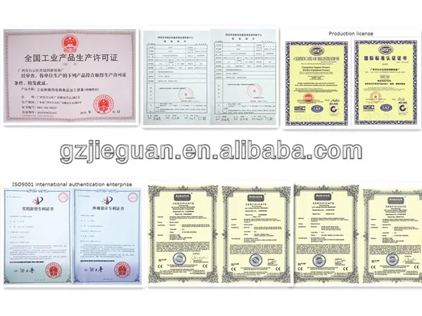 Our company passed the certificate of ISO9002 intemational management system cetification enterprises, and our products passed national testing qualified and got the access to national production license; moreover, we have a number of national patents, and some products have passed CE approval and obtain the certificate. Our main products: Combi Oven, Coffee Machine, Cooking Ranges, Food Warmer, Display Showcase, Fryer, Griddle, Chicken Rotisseries, Kebab Grill, BBQ Grill, Pizza Oven, Snack Equipment, Cooling Equipment etc.