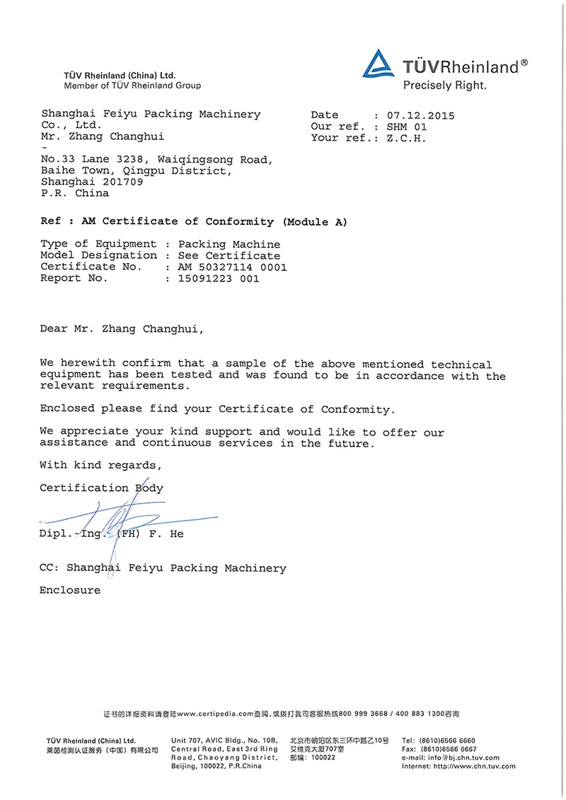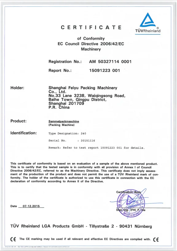 | Certification: | CE-CoC; | Machinery Test Report: | Provided; |