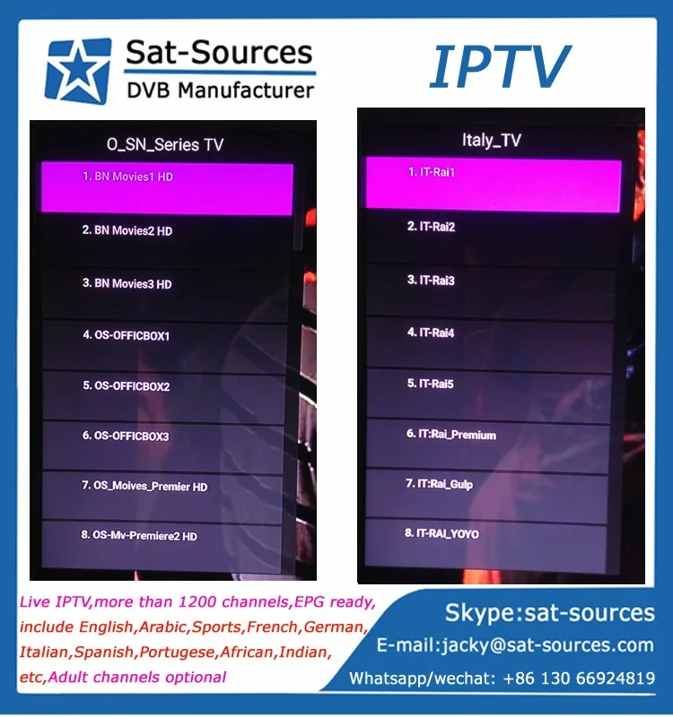| African IPTV: | 115 Channels; | French IPTV: | 131 Channels; |