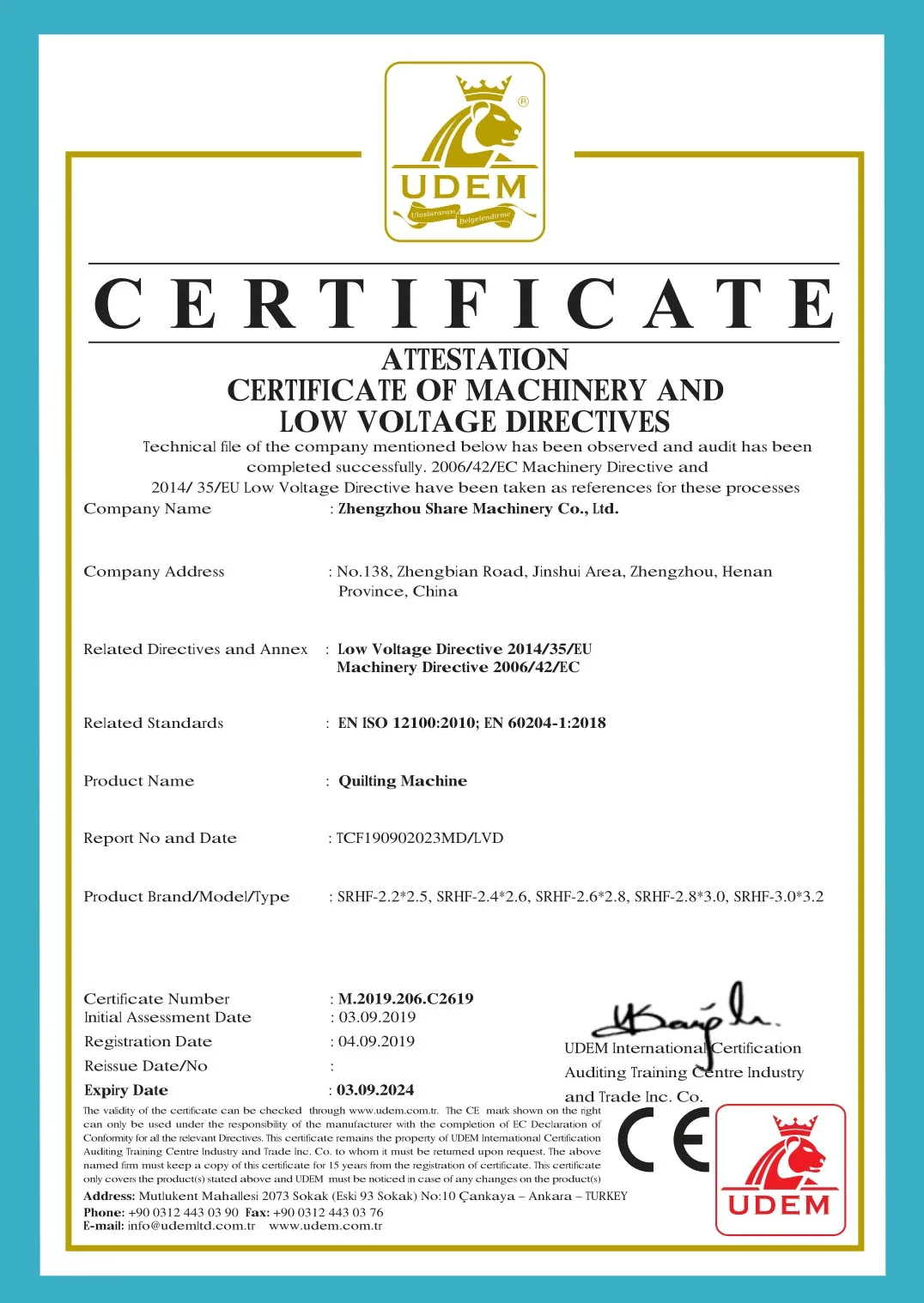 | Machinery Test Report: | Provided; | Package Preview: | ; |