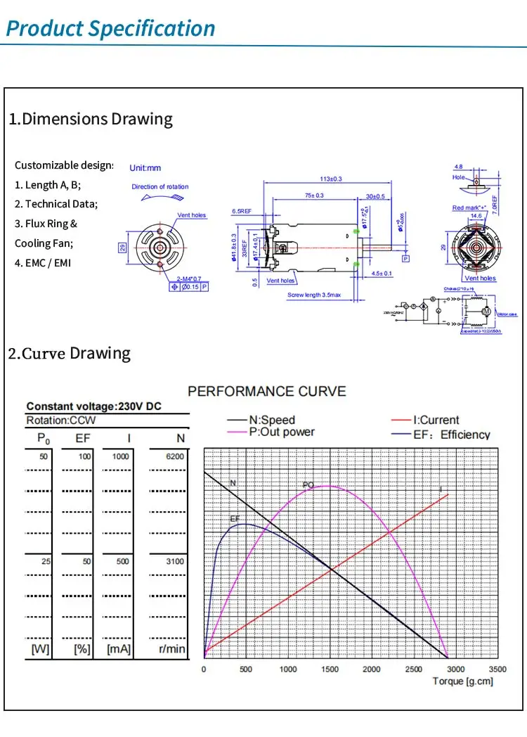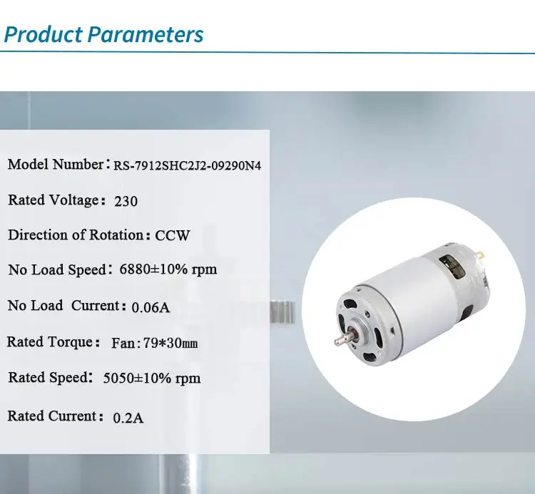 | Application: | Hand mixer, Hand dryer etc; | Working voltage: | 230V DC; |