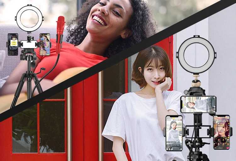| Product name: | Tripod Set With Led Ring Light Fill Light Phone Holder Sound Card Tray; | Material: | Plastic; |
