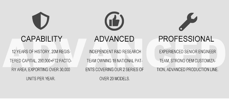 Our factory covers an area of more than 27,000㎡(290,000 ft2)and we have a team of over 50 professional technicians for better QC management and advanced R&D. D&H holds 18 national patents by the feature of multifunction, compact size, light weight and flexibility.