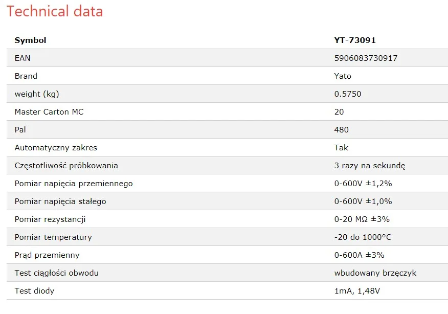 | Brand Name: | YATO; | Selling Units: | Multiple of 20; |