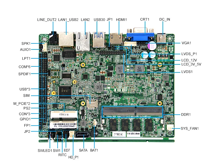 3.5Inch Integrated InTel 7th Gen Mobile Kaby Lake-U I5- 7200U Industrial Mainboard with DC 12V Power Supply