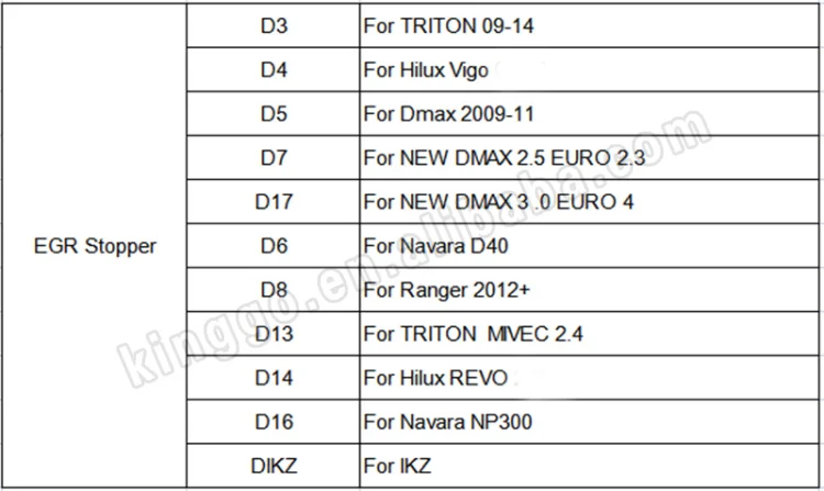 | Part Number: | KG-D8; | Application: | Block exhaust gas from entering engine; |