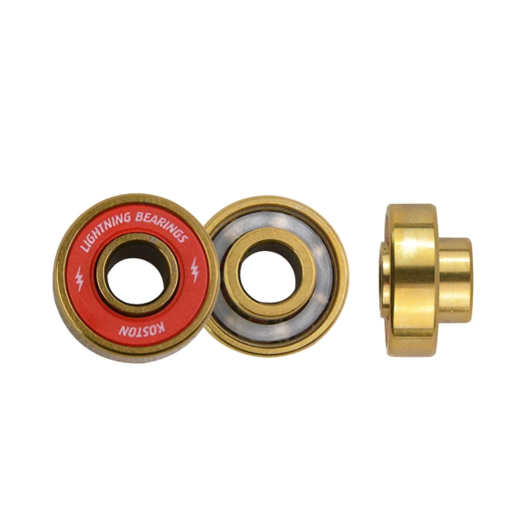 Pro Quality Level 608 RS Chrome Steel Integrated Longboard Bearings with Golden Spacers
