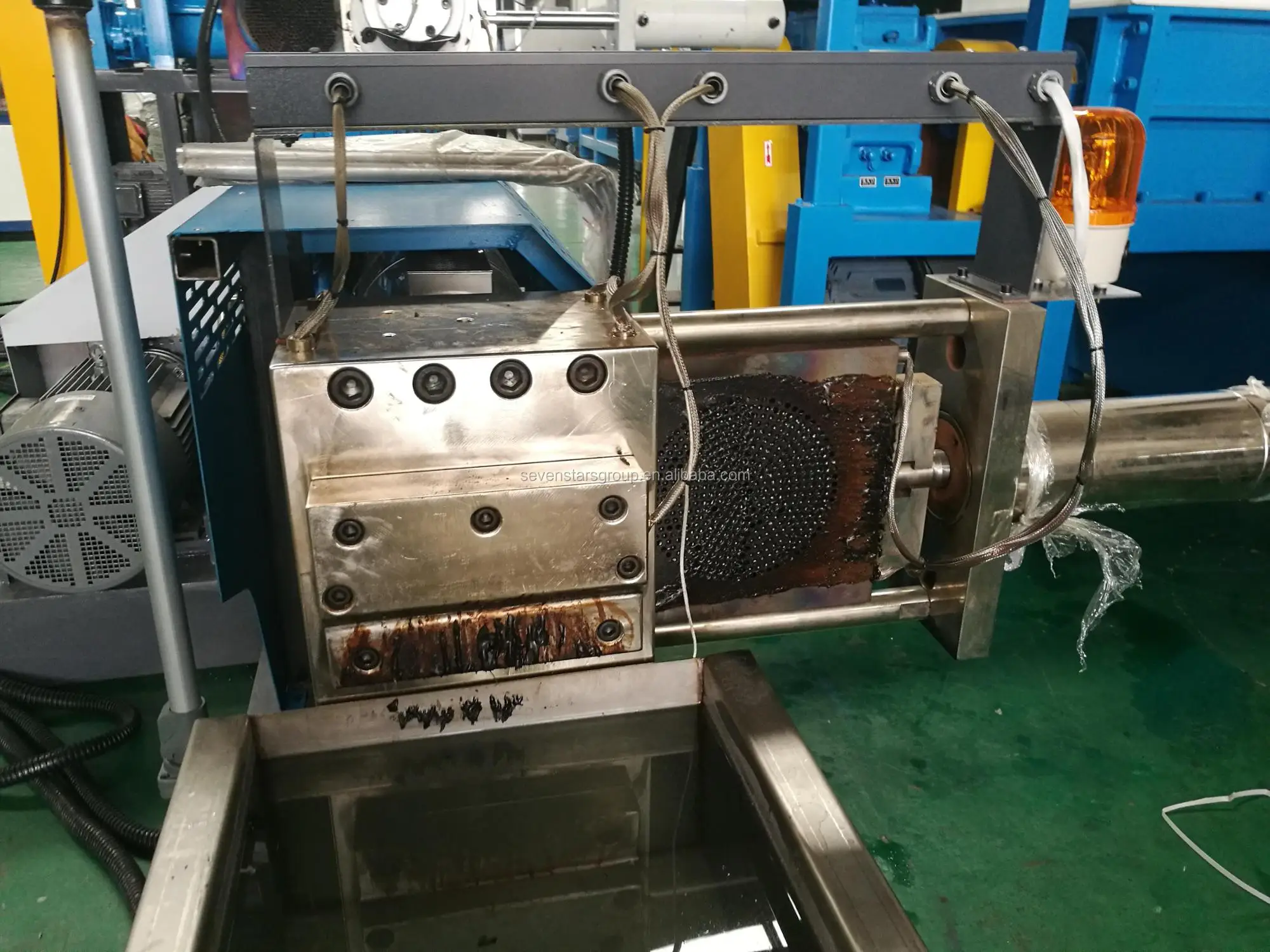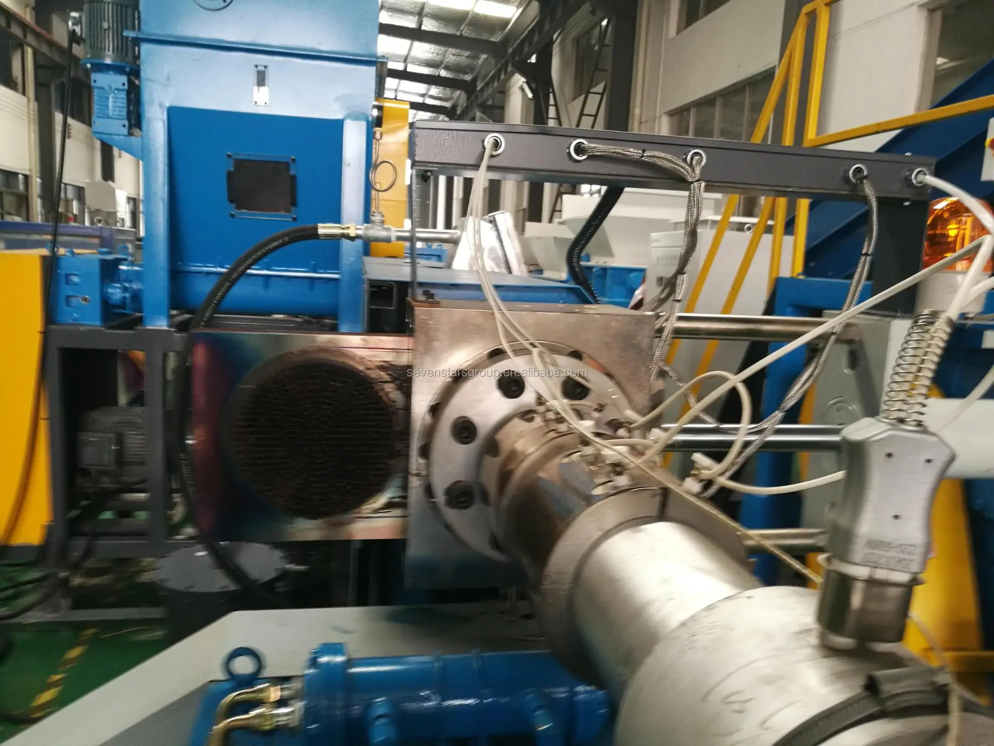 This machine is used to extrude plastic cleaned by high temperature.The extrusion line can be consisted by such accessory machine: main motor, the gear box, the distribution box, the barrel and screw, the dies,