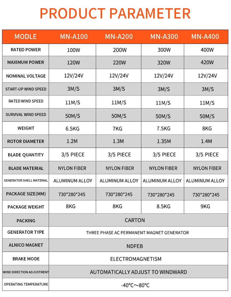 | Warranty: | 3 Years; | Rated wind speed: | 10m/s; |
