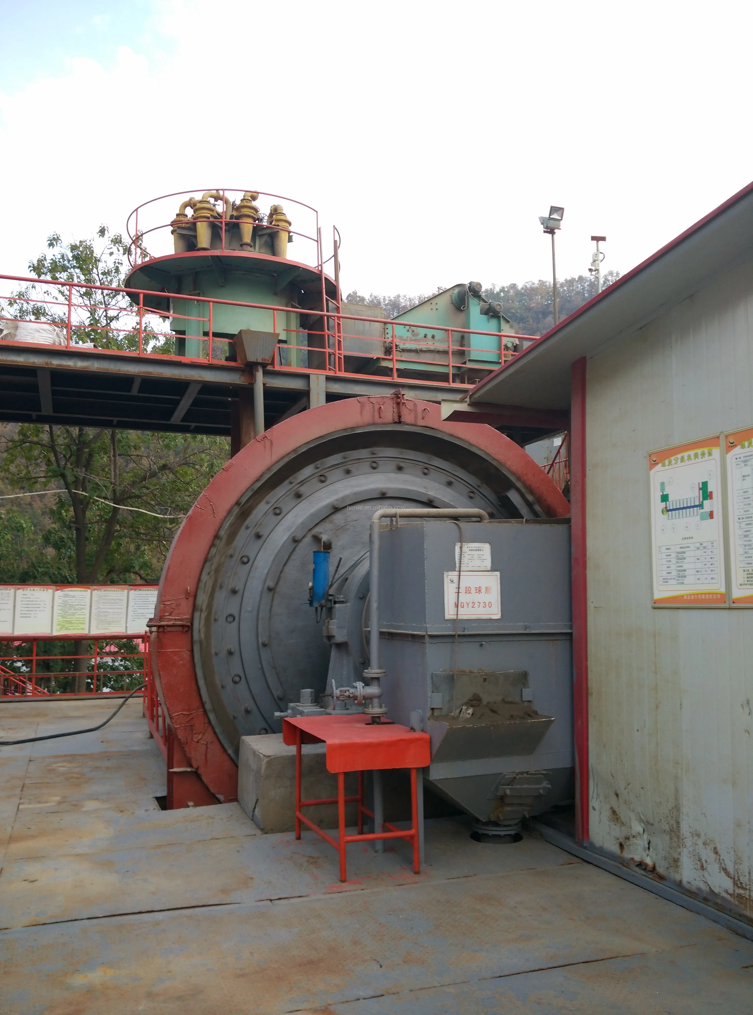 Raw material from powder silo will be sent to first ball mill by feeder and belt conveyor, ball mill discharges to spiral classifier, bigger size will be returned back for re-grinding. Overflow will be pumped to hydro cyclone by slurry pump for second classifier: bigger size will go to second ball mill, and the discharges are returned to the second classifier. It is named two steps two closed circle grinding flow chart. Overflow from hydro cyclone will be sent to trash screen and thickener.