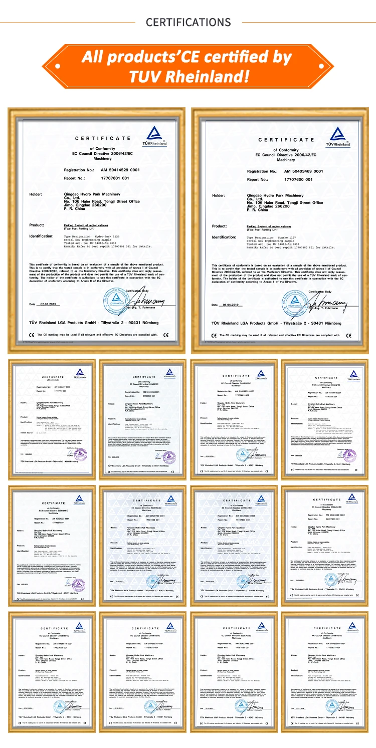 | Type: | Parking Lift; | Certificate: | TUV CE ISO; |