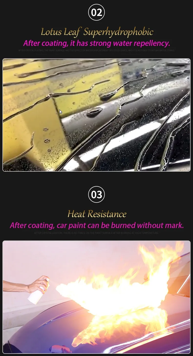 BRIGHTING - After use this car liquid ceramic, the surface of car will form a layer of crystals, like a mirror, forming a mirror full reflection effect, make it brightening Twice.