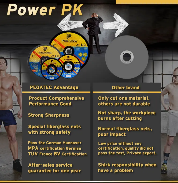With 35 years of manufacturing experience, we create unique competitiveness. "Sharp! Accurate! Durable!" is the standard of our products. Our cutting wheels and grinding wheels are now exporting to more than 90 countries and more than 22agents around the world. Hot sale PEGATEC 115x1.6x22mm Cutting Disk for Stainless We pay 100% attention to quality. We never take chance in raw material. Each working procedure is treated with the most rigorous attitude and the advanced environment control. It makes each grain of raw material maximizing the performance and then ensure the high quality and stability of products. All our cutting wheels and grinding wheels will pass the semi-product testing, finished-product testing and inspection before delivering. Quality passes only after 3 times testing.