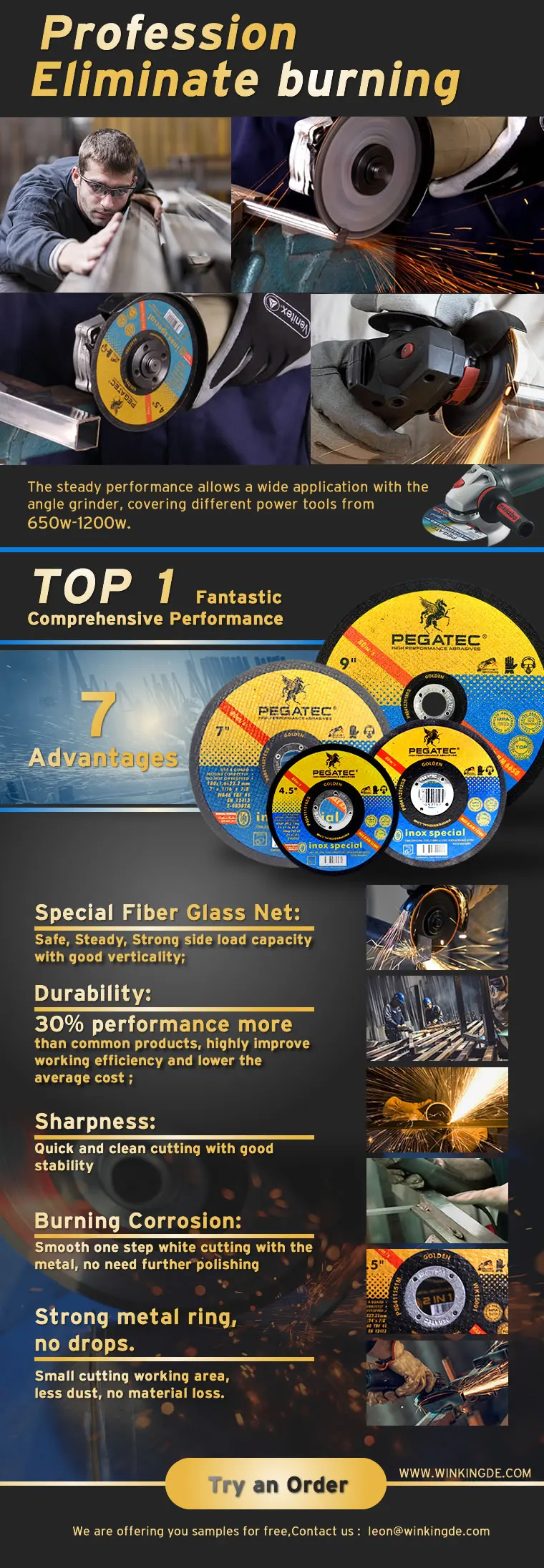 -Used for 9" angle grinder,230mm diameter cutting wheels are suit to europe, Middle East, American and South-America market, and etc. -1.6/1.9/2.0/2.5mm thickness cutting disc can fastly cut different materials,minimize the friction and increase sharpness. Hot sale PEGATEC 115x1.6x22mm Cutting Disk for Stainless -Has perfect abrasive performance and extra durability on application of stainless steel,obvious advantage among the competition of various brands.4.5" 115x1/1.6x22.2mm PEGATEC 115mm Cutting Off Disk For Stainless Steel |