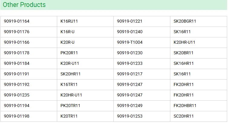 OEM NO. | 90919-01192 K16TR11 |