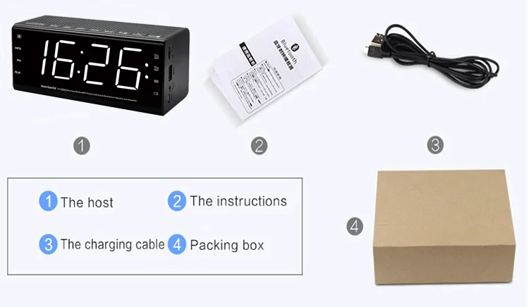 Feature | TWO Alarm clock/wireless /FM/USB/TF card/AUX IN/Hands-free/SNOOZE/Earphone |