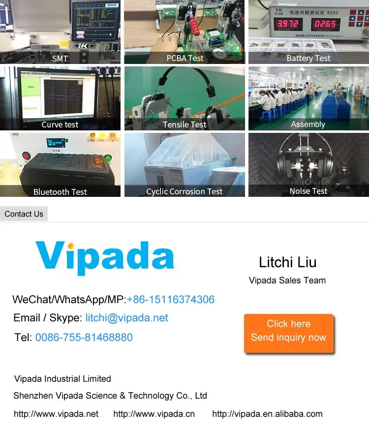 Vipada are factory in China, manufacturing Bluetooth earphones, Bluetooth speaker, Bluetooth speaker watch, Bluetooth car kits, Bluetooth receivers, smart watches