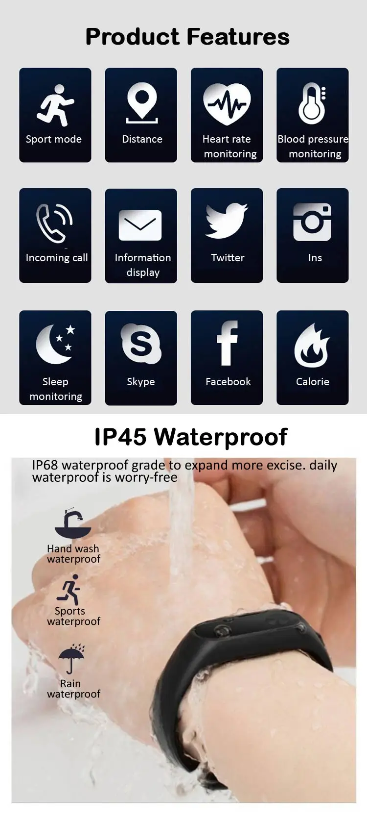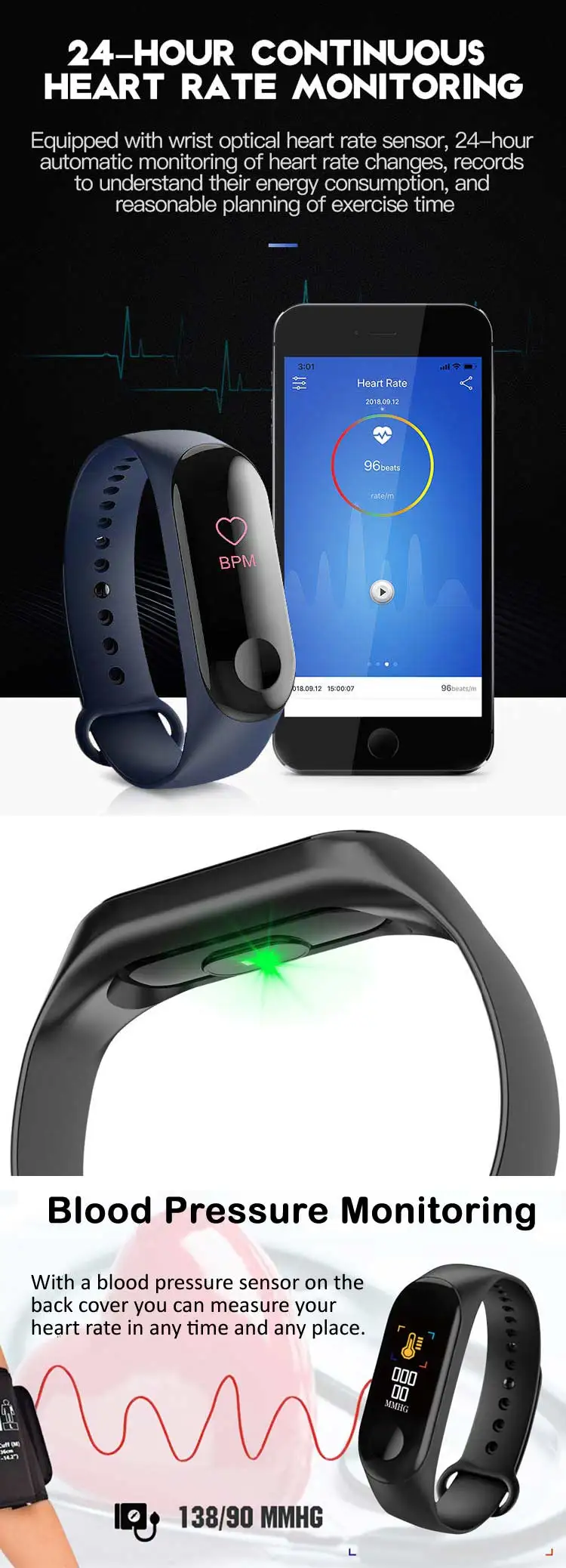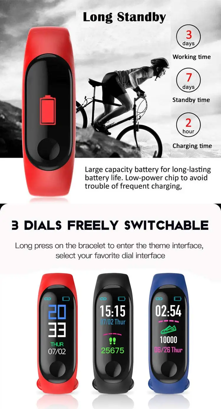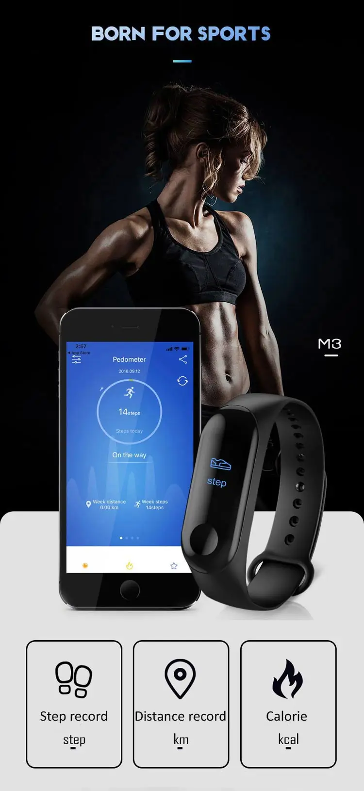 M3 Band Smart Watch Pulsera reloj Inteligente Sport Bracelet Fitness Tracker Heart Rate Monitor Blood Pressure Smartwatch