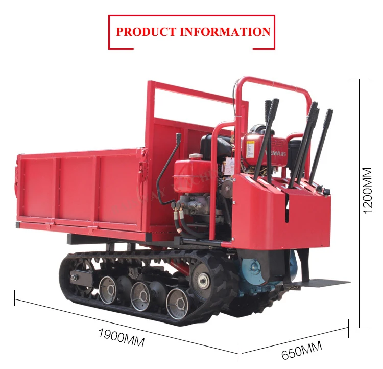 | Product name: | Mini dumper Crawler tracked dumper; | Dimensions (L x W x H) (mm): | 1900x650x1200; |