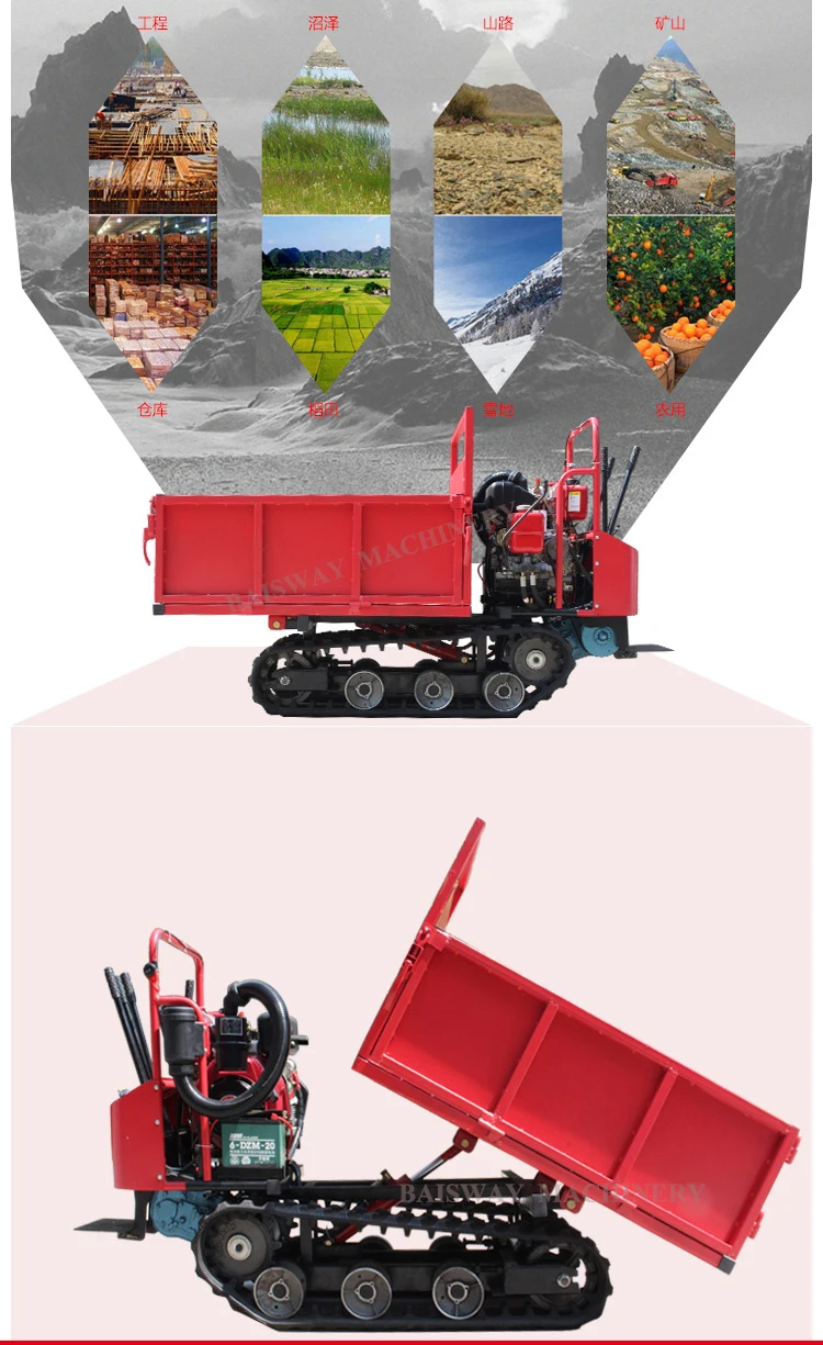 3. It is widely used in the transportation of farmland, orchard, greenhouse, nursery beds, beaches, snow fields, construction sites and other complete topography and narrow roadbed.