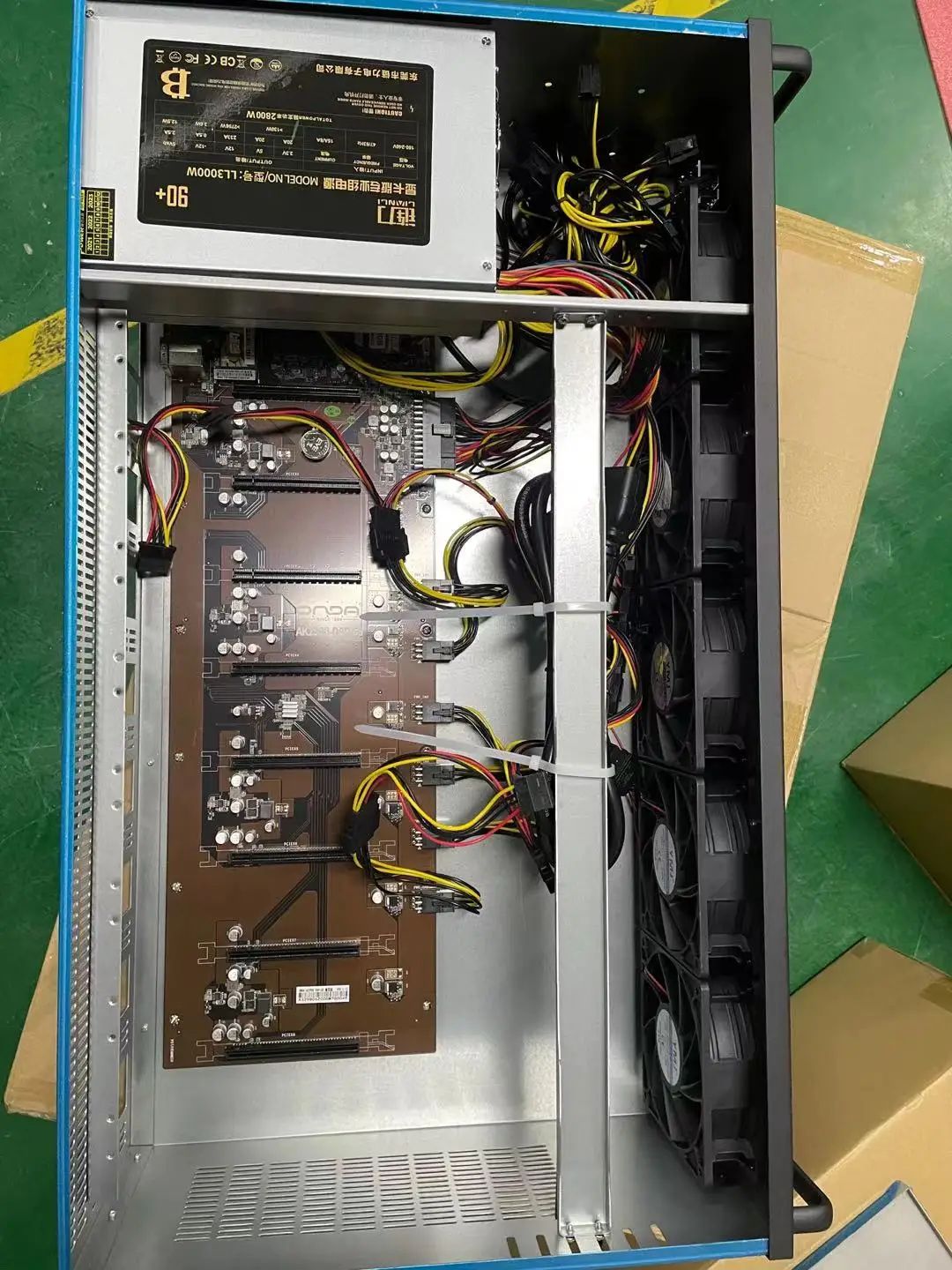 8gpu mining motherboard inbuild Intel CPU (65MM PCIE distance)+ mining case + 5*fans +2800w psu+ DDR3 Ram 4GB + 128GB SSD
