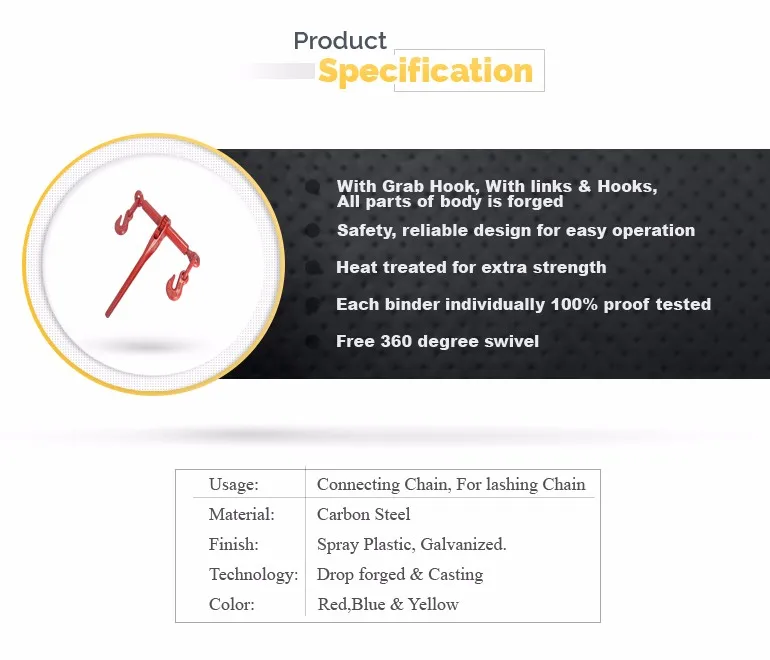| Material: | steel,Steel carbon, Alloy Zinc; | Supply Ability: | 100000 Piece/Pieces per Month 5/16"~3/8" 19000Ibs Chain Load Binder With Link Hook; |
