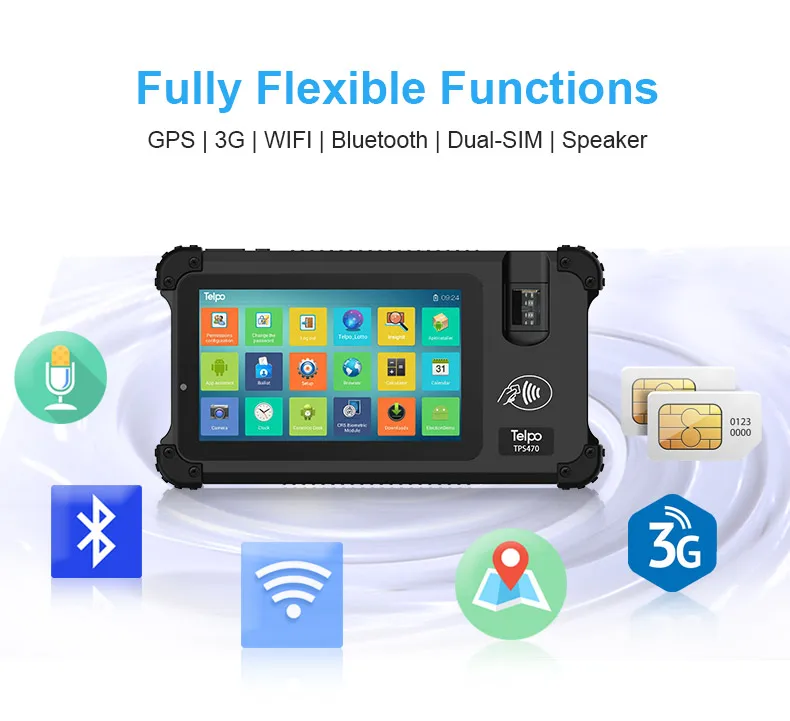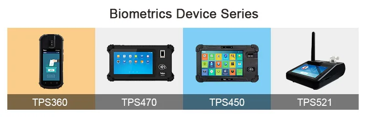 As an outstanding biometric tablet, TPS470 support all kinds of fingerprint scanner such as TCS1/TCS2 or FAP10/FAP20, PIV/STQC certificated.