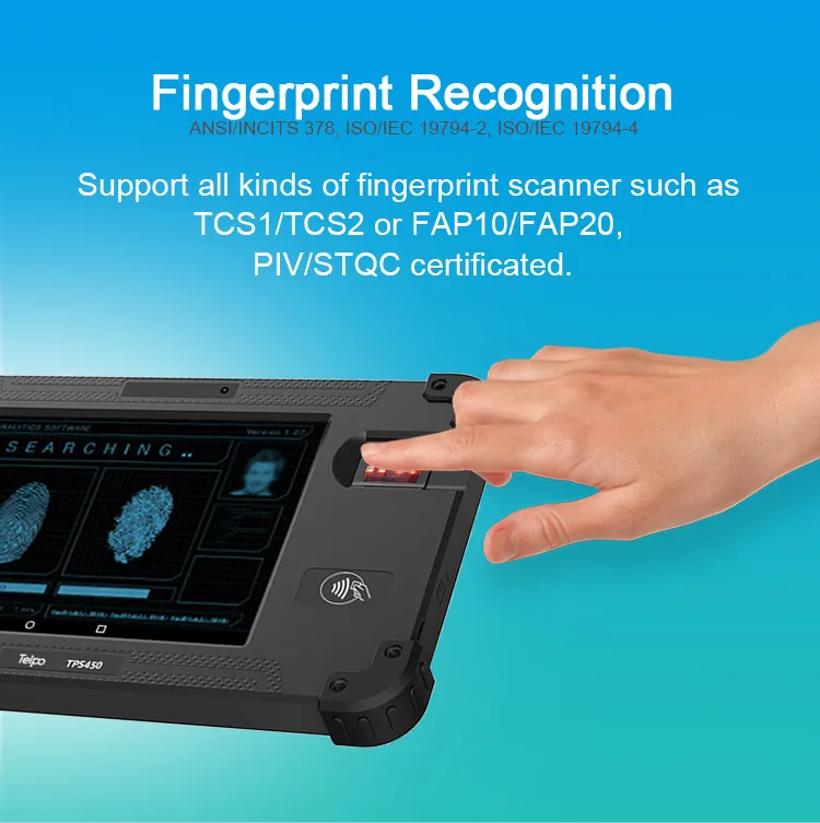 | Fingerprint Scanner | ANSI/INCITS 378, ISO/IEC 19794-2, ISO/IEC 19794-4 |