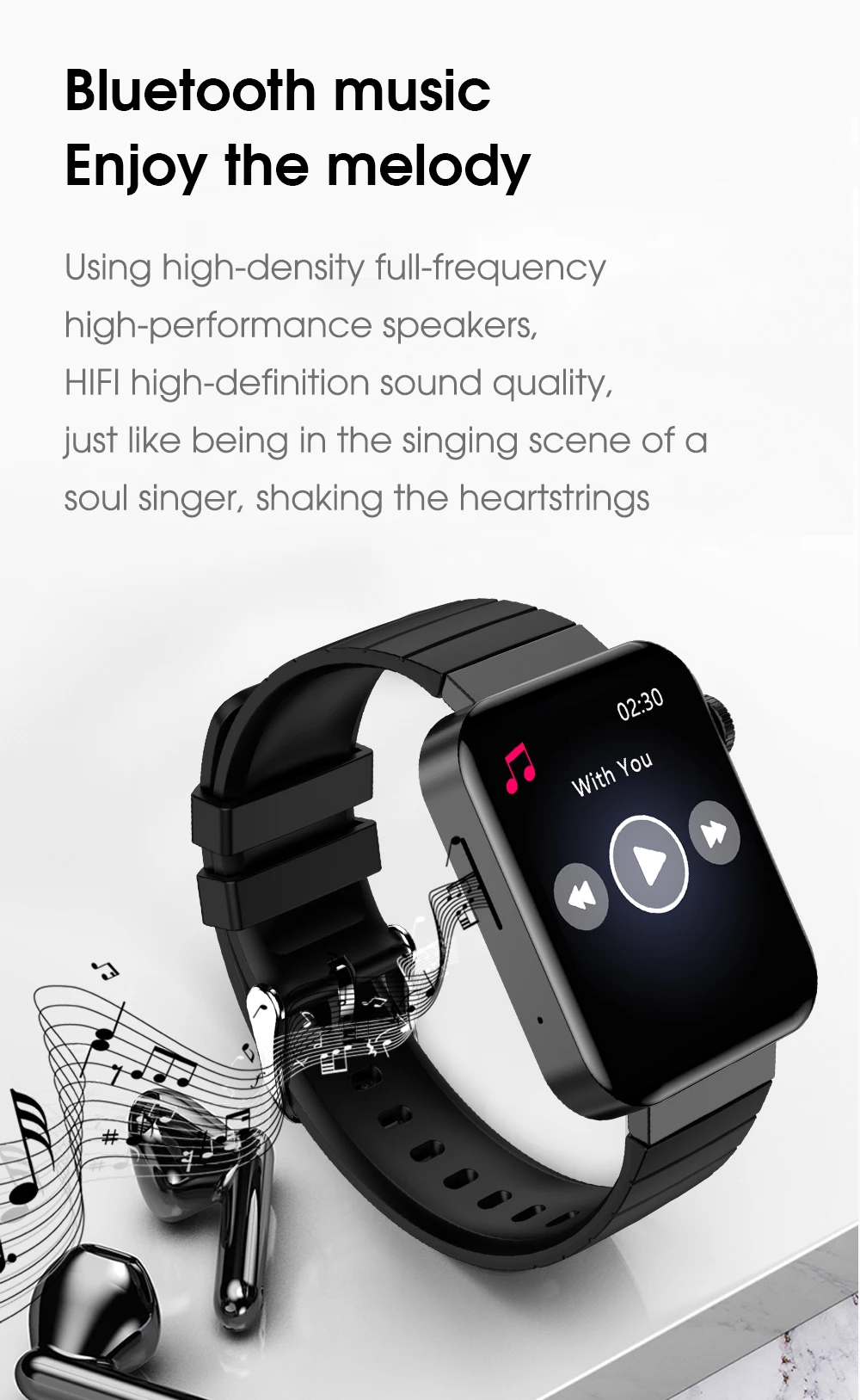 Main Feature | The main selling points of M1 watch products: support calls, music contro,temperature heart rate, electrocardiogram, blood pressure, pedometer, smart honeycomb style menu, nine square grid menu, IP68 waterproof, 310MAH battery | ||