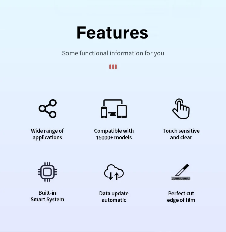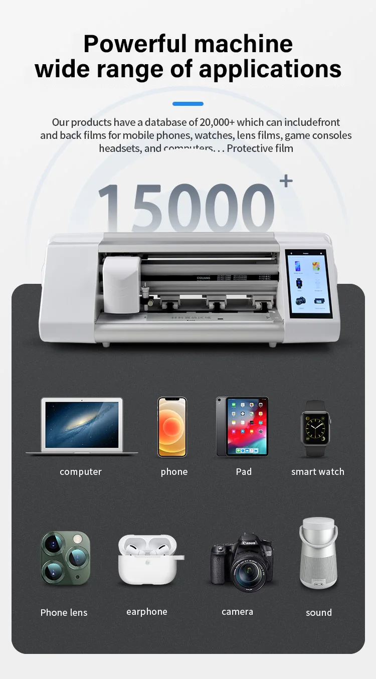 | Application: | Mobile phone full body protector; | Use: | Mobile Phone,PC / Notebook,Mobile Phone,Mp3 Player,Camera,Video Game Player,GPS,PDA,Smart Watch,camera lense of mobilephone,protective film cutting machine; |