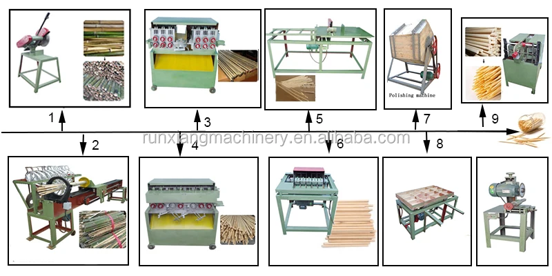 1. The above products with original bamboo - picking sawing - open bamboo - play sectionwide open piece, wire drawing, bleaching,drying, cut to length, grinding, sorting, sharpening, packaging.